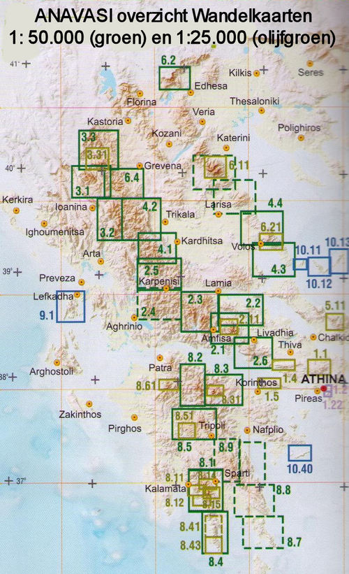Overzicht Wandelkaarten Anavasi 25.000 en 50.000 Peloponessos