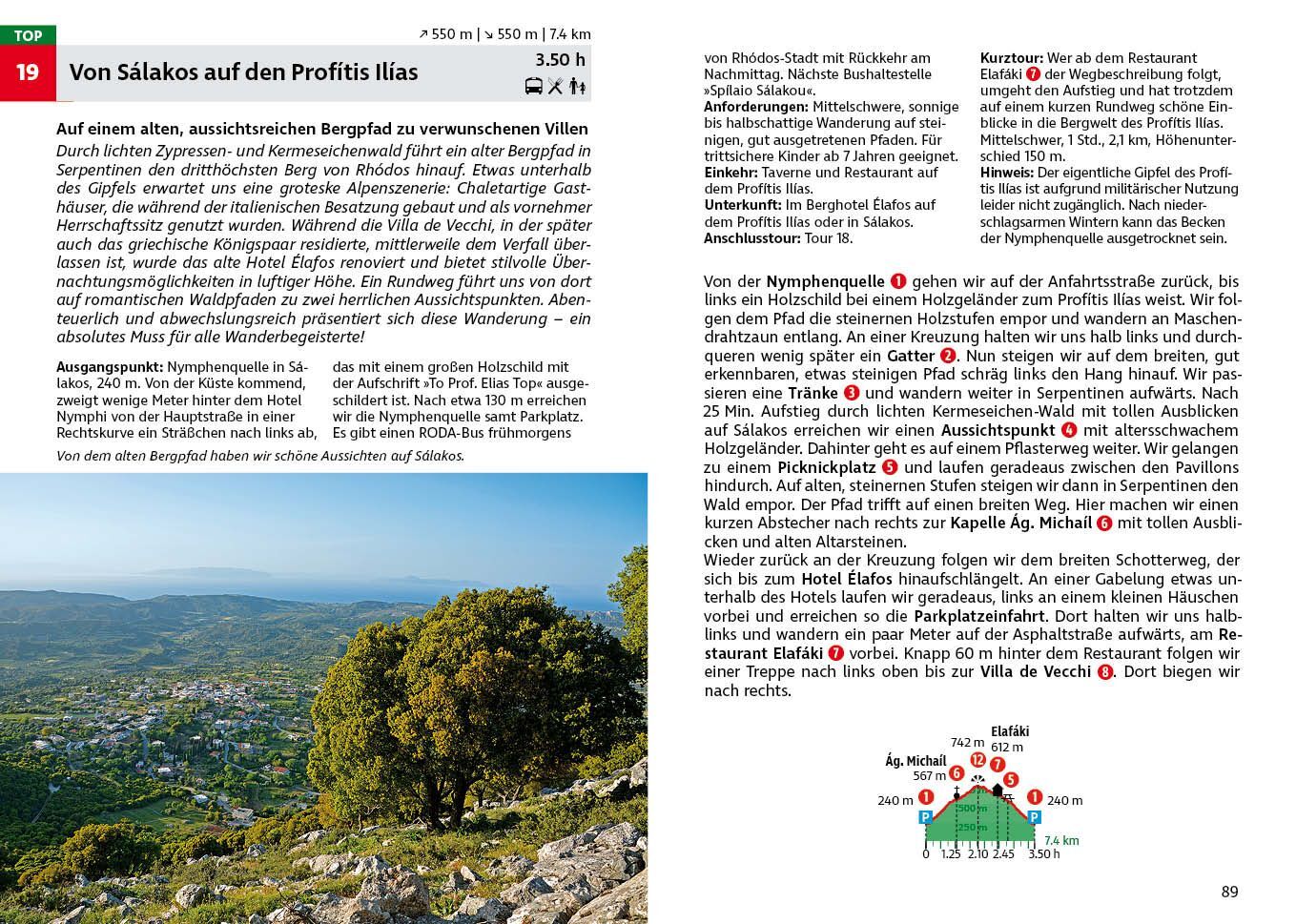 Duitstalige wandelgids van Rhodos met zeer goed beschreven wandelingen in de wandelgebieden. Redelijk kaartmateriaal, vooral de beschrijving van de route en de praktische info die er bij hoort is goed.