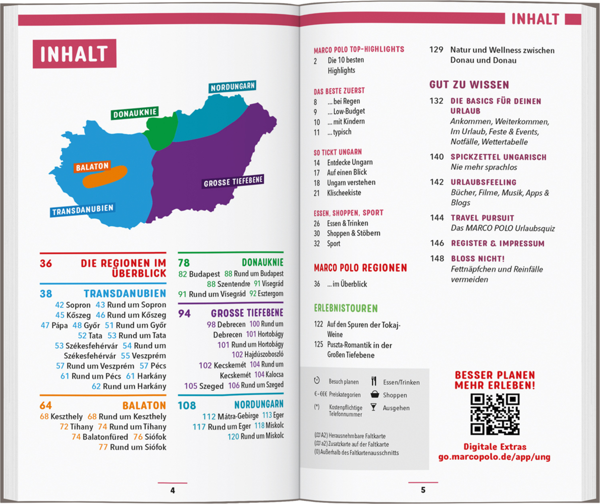 MARCO POLO Top Highlights Das Beste zuerst So tickt Ungarn Essen, Shoppen, Sport Regionen im Überblick Transdabubien Balaton Donauknie Große Tiefebene Nordungarn Erlebnistouren
