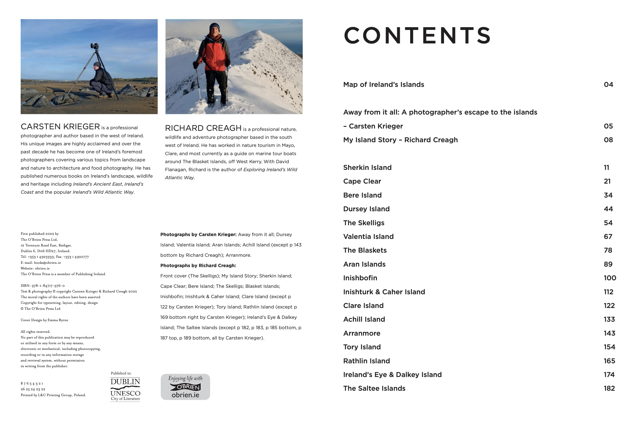 Take a photographic journey around Ireland's coast and explore the landscape, history, heritage and wildlife of the offshore islands. Photographers Carsten Krieger and Richard Creagh have a deep love for and knowledge of these special places. From rugged cliffs thronged with seabirds to tranquil bays, and from quiet strands to bustling villages, their words and images bring to life the uniqueness of these small, sea-locked worlds.