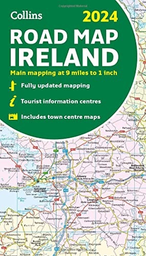 Discover new places with fully updated road atlases from Collins. Full-colour map of Ireland at 9 miles to 1 inch (1:570,240), with clear, detailed road network and counties and new administrative areas shown in colour. This double-sided map covers the whole of Ireland, and is ideal for reference or route planning.