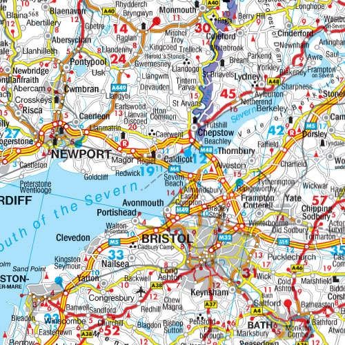 Deze recto/verso gedetailleerde landkaart van Groot-Brittannië en Ierland is zeer geschikt voor het plannen en voor het rondtrekken door het land.Het wegennetwerk is goed weergeven, zowel de hoofdwegen, de provinciale en lokale wegen. Tevens worden wegnummers duidelijk vermeld. Afstanden tussen plaatsen zijn in kilometers op de kaart ingetekend, daarnaast worden ook op belangrijke plekken benzinestations gemarkeerd.