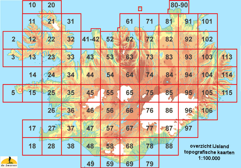 Overzicht topografische kaarten 1:100.000 Ferdakort - IJsland