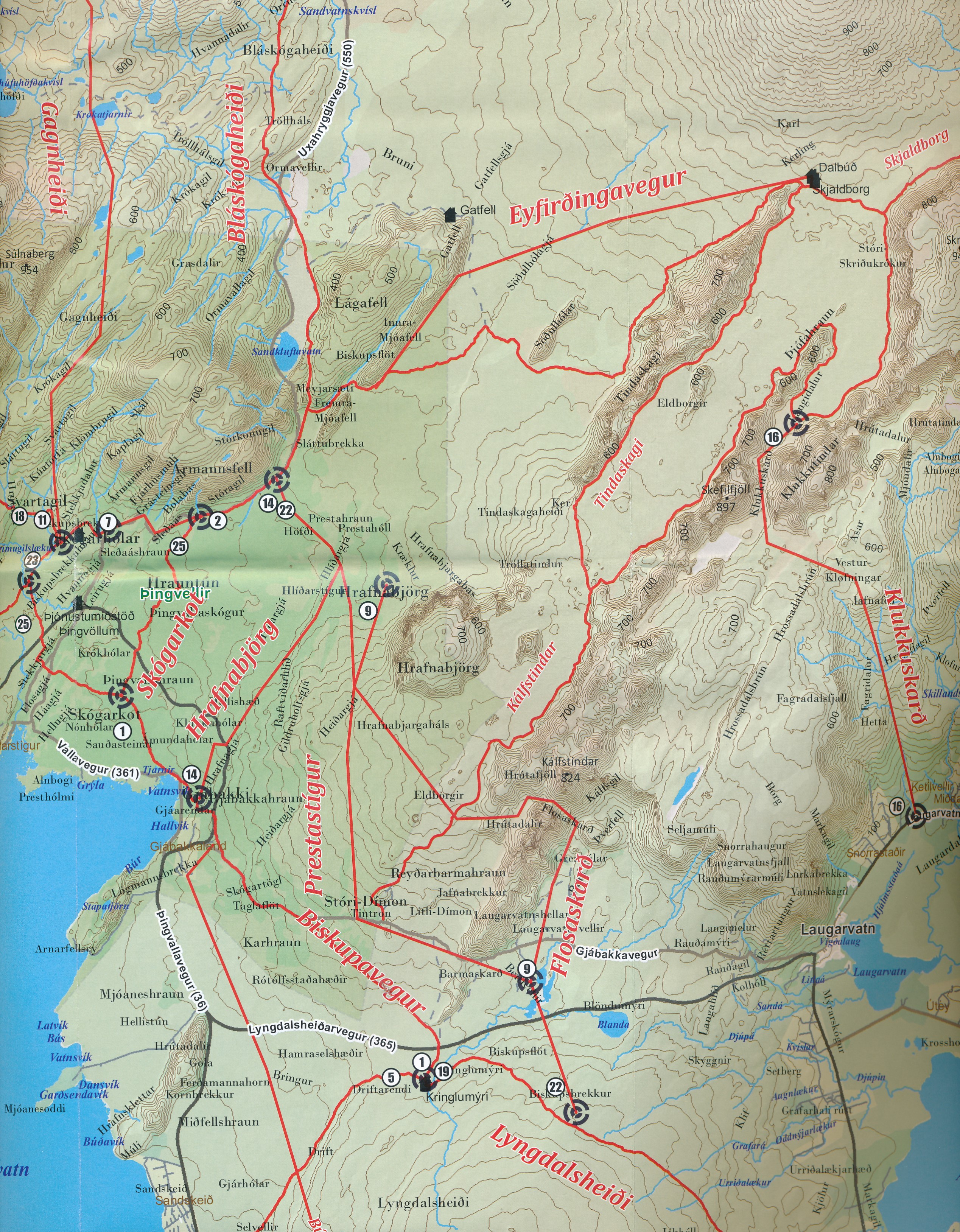 Sögur Publishing House, een IJslandse uitgever in Reykjavik, heeft onlangs vijf nieuwe, boeiende en gedetailleerde wandel- en ruiterkaarten uitgegeven. De kaarten zijn beschikbaar in de IJslandse en Engelse taal, en zitten in een plastic mapje, wat zowel bij het wandelen als het paardrijden handig is. Elke kaart biedt ongeveer 40 verschillende routes. De belangrijkste kenmerken zijn: verbeterde hoogtelijnen met een interval van 20 meter, een nauwkeurigere schaal (1/100.000), historische verwijzingen en beeldige beschrijvingen die het landschap schetsen. Ook de overnachtingsmogelijkheden (lodges) langs de paden worden aangeduid.