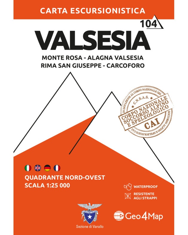 - Wandelkaart - Topografische kaart 104 Valsesia - Monte Rosa | Geo4Map