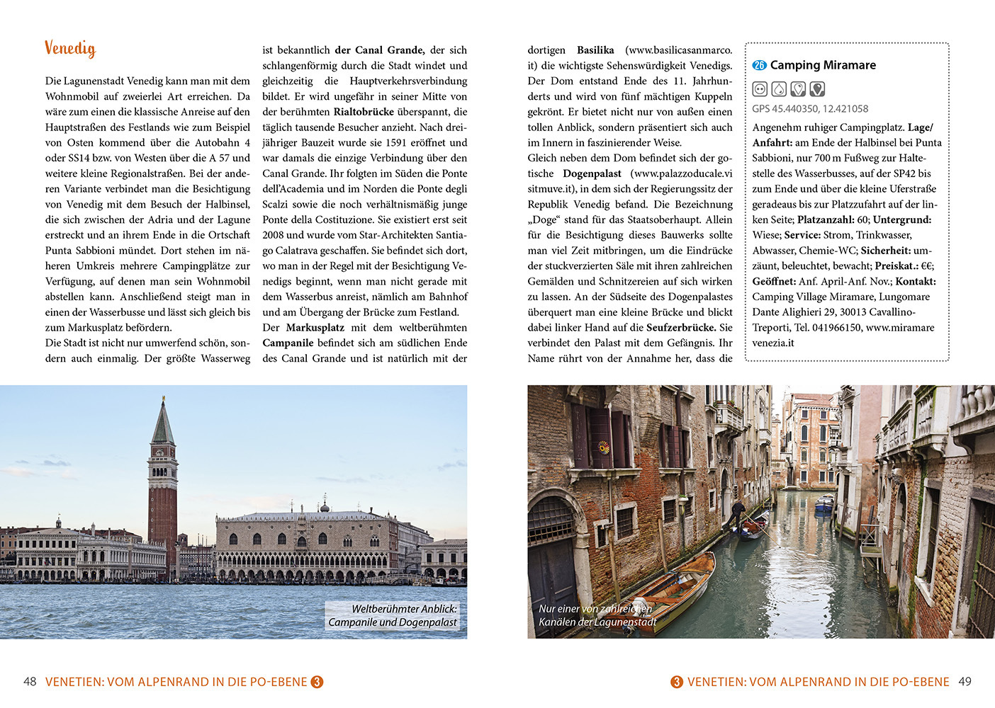 Als Ausgangspunkt für die Entdeckungen werden über 200 ausgewählte Stell- und Campingplätze an den landschaftlich schönsten Stellen entlang der Touren vorgestellt. Dazu empfehlen die Autoren erlebnisreiche Radtouren und Wanderungen.