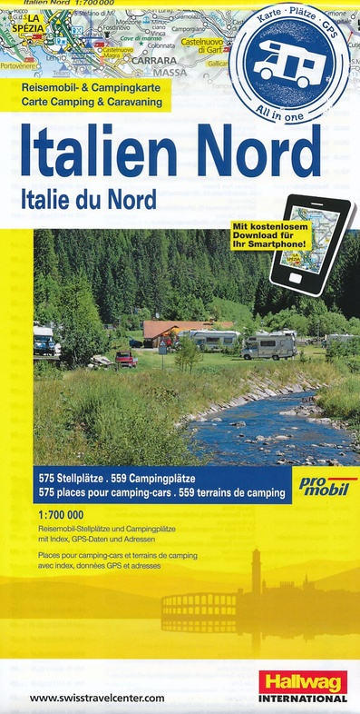 Wegenkaart - landkaart Noord Italië voor camping en camper | Hallwag (9783905755749)