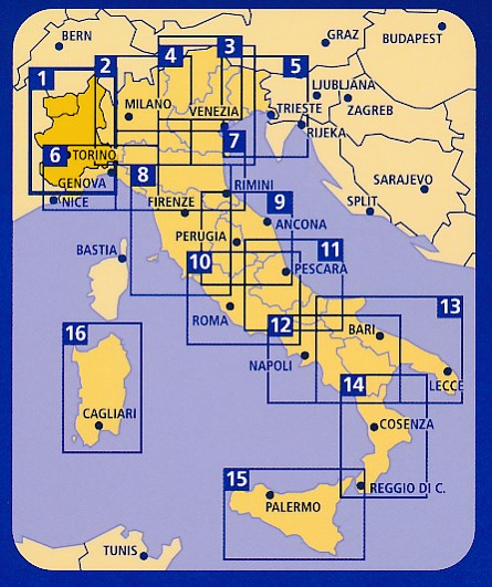 Overzicht wegenkaarten Italie Kummerley & Frey 1:200.000