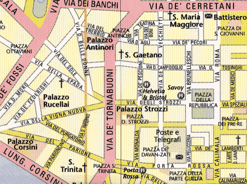 1:6,750 scale 1st Edition. Firenze (in Italian), or Florence (in English) is one of the most culture-rich cities in the world. Most of the city's centre is now a pedestrian enclave, which is shown on this map. Coverage is from the Pitti Palace to the Campo di Marte to the Ippodromo, with a detailed central core inset concentrating on the Ponte Vacchio and Palazzo area. Map size: 26"X39"