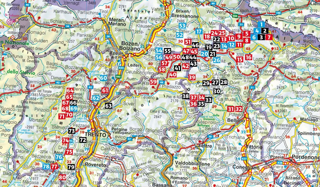 80 ausgewählte Klettersteige zwischen Sexten und Riva