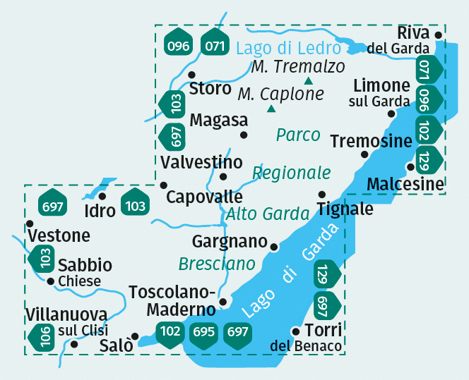Limone sul Garda, Gargnano, Salò, Tignale, Toscolono Maderno, Tremosine, Valvestino