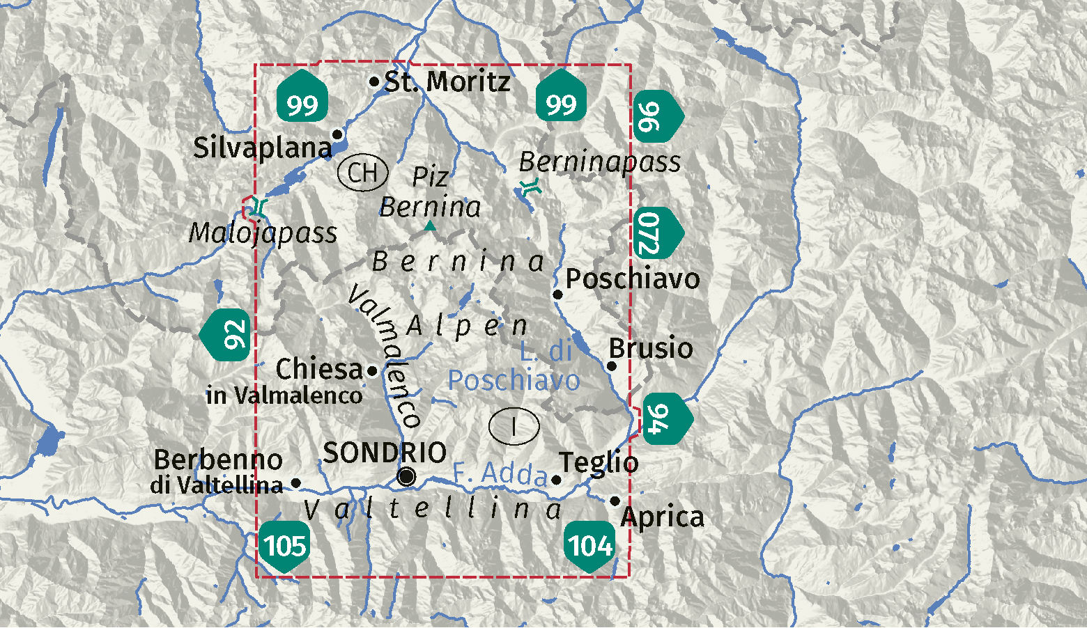 - Wandelkaart 92 Valchiavenna - Val Bregaglia | Kompass