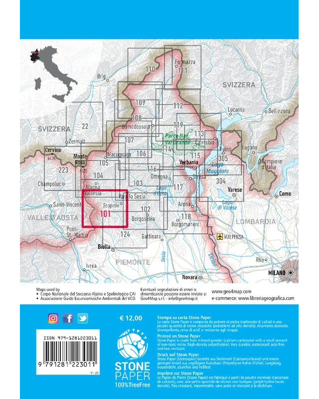 - Wandelkaart - Topografische kaart 101 Valsesia - Riva Valdobbia | Geo4Map