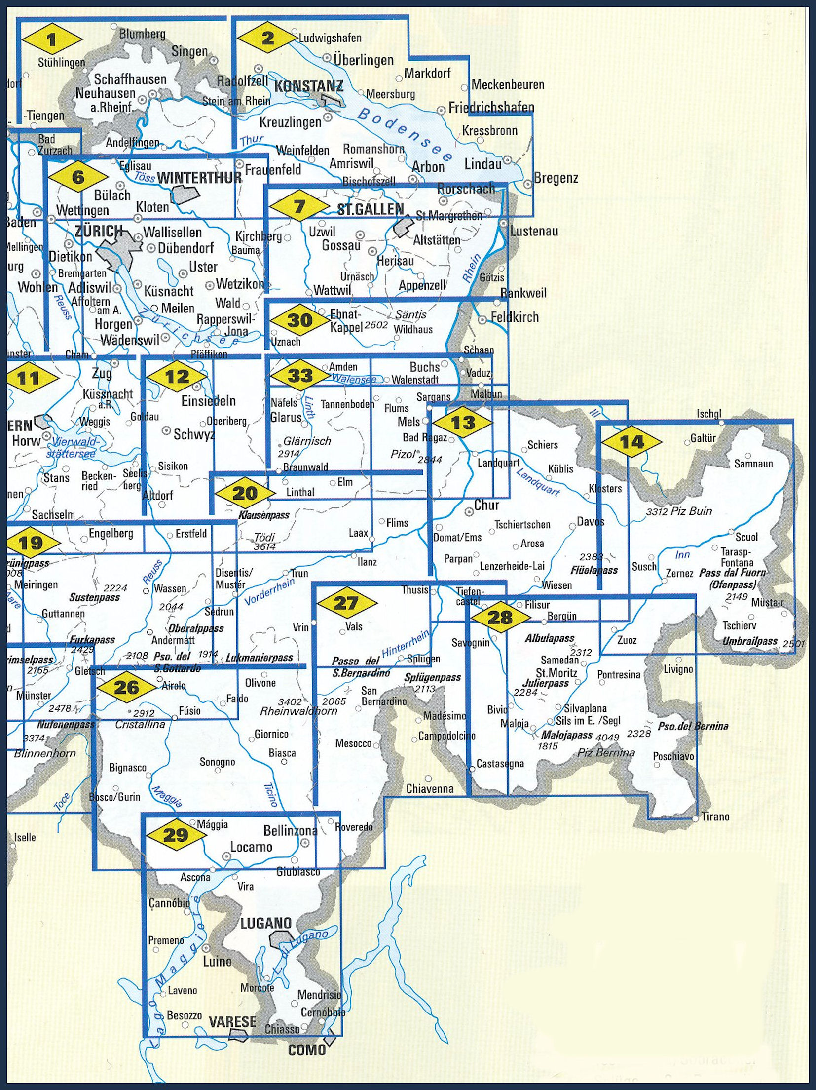 Zeer duidelijke wandelkaart van een deel van Zwitserland. Deze kaart - gemaakt op scheur en watervast papier - is bedoeld voor de gewone en gemiddelde bergwandelaar. Ook voor huttentochten is deze zeker geschikt. Slechts voor de gevorderde wandelaar die glesjers gaat overschrijden zijn de 25.000 topografische kaarten aan te raden.