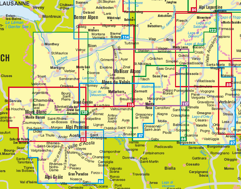 Het is een mooie overzichtskaart, maar voor het maken van wandelingen in Valsesia zou ik het meer gedetailleerde vierluik van 1:25000 kaarten adviseren. Daar zijn we uiteindelijk ook mee op pad geweest; prima.