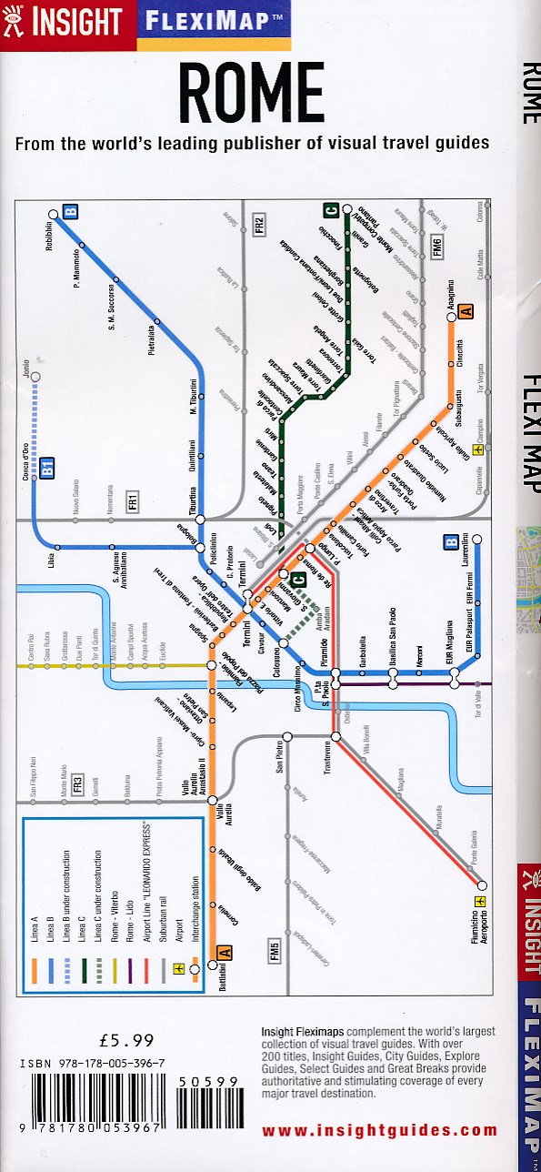 A detailed plan of Vatican City is also included. The Rome Metro system is shown on a dedicated plan which is located in a prominent position for ease of use. The reverse side shows the area around the city at a scale of 1:28 000 (1cm = 0.28km) - ideal for exploring slightly further afield.