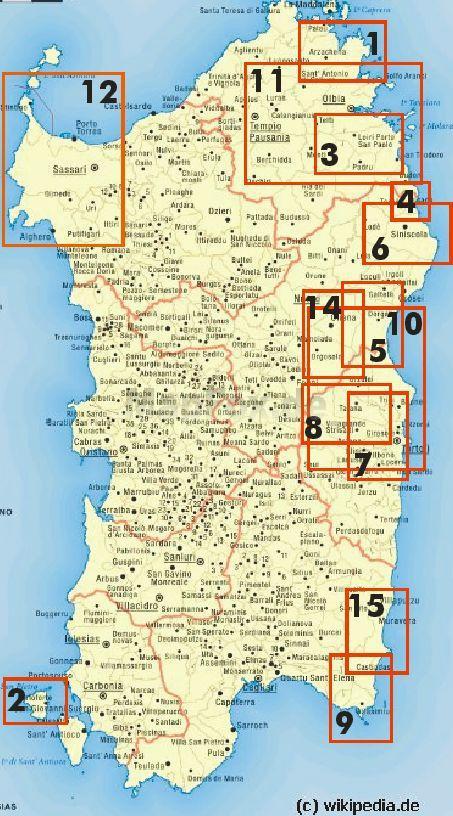 Mooie wandelkaart van het noord oostelijk deel van Sardinië, onder Olbia.
