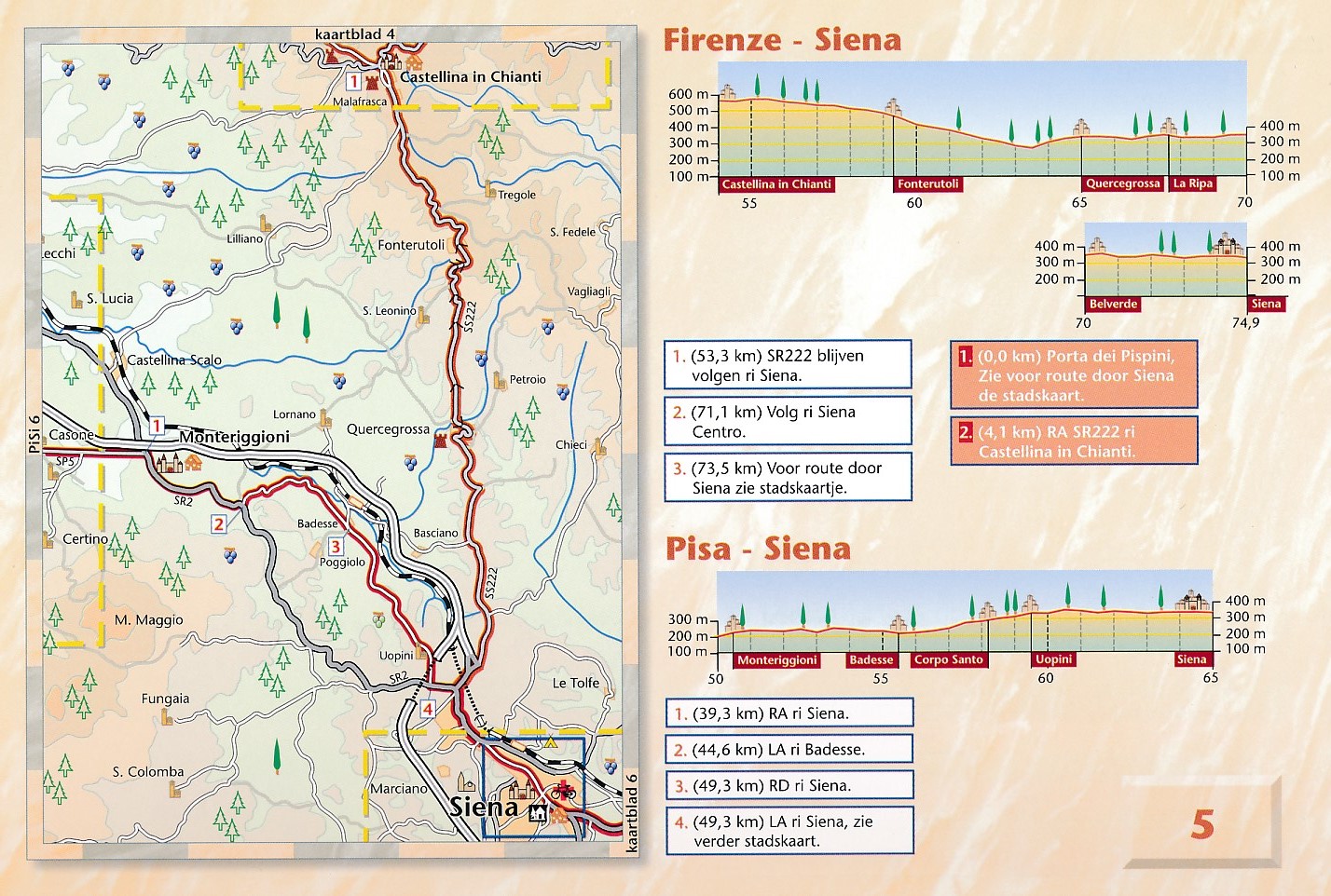 In de 23 detailkaarten (schaal 1:100.000) en stadsplattegronden is alle informatie verwerkt die men als fietser direkt nodig heeft, zoals hoogteprofielen, symbolen voor cafés, slaapaccommodatie en fietsenmakers.