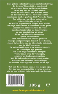 Deze gids is onderdeel van een routebeschrijving die je vanaf Maastricht al wandelend de weg naar Rome zal laten ontdekken. In De Weg van de Franken deel III wordt de route vanaf San Miniato Basso, in de buurt van Lucca, Florence en Pisa beschreven tot het graf van Sint Petrus in Rome. Een gids waarvan alleen het gewicht in letterlijke zin gering is en waarin je precies die dingen kunt vinden welke je wandeltocht meerwaarde zullen geven. Daarom veel aandacht voor de route met kaartmaterialen als kunstwerkjes en een beschrijving als steun bij de twijfelachtige momenten tijdens het wandelen. Ook veel informatie over de plaatsen waar je noodgedwongen tot rust moet komen, steeds in het licht van de historische betekenis van de Via Francigena. De vele afbeeldingen in de vorm van foto’s en tekeningen zijn gekozen om je in de goede sfeer te brengen: vooraf om je er op te verheugen, achteraf als herkenningspunten. Met digitale ondersteuning van de route, waarop - ook onderweg - aanvullingen en recente ervaringen te vinden zullen zijn. Wat ook de motieven voor je reis mogen zijn, Het kan een onvergetelijke ervaring worden, die als een mijlpaal in je leven zal voortbestaan.