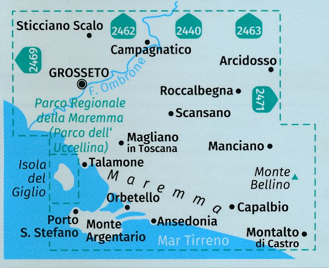 - Wandelkaart 2470 Maremma - Grosseto - Monte Argentario - Isola del Giglio | Kompass