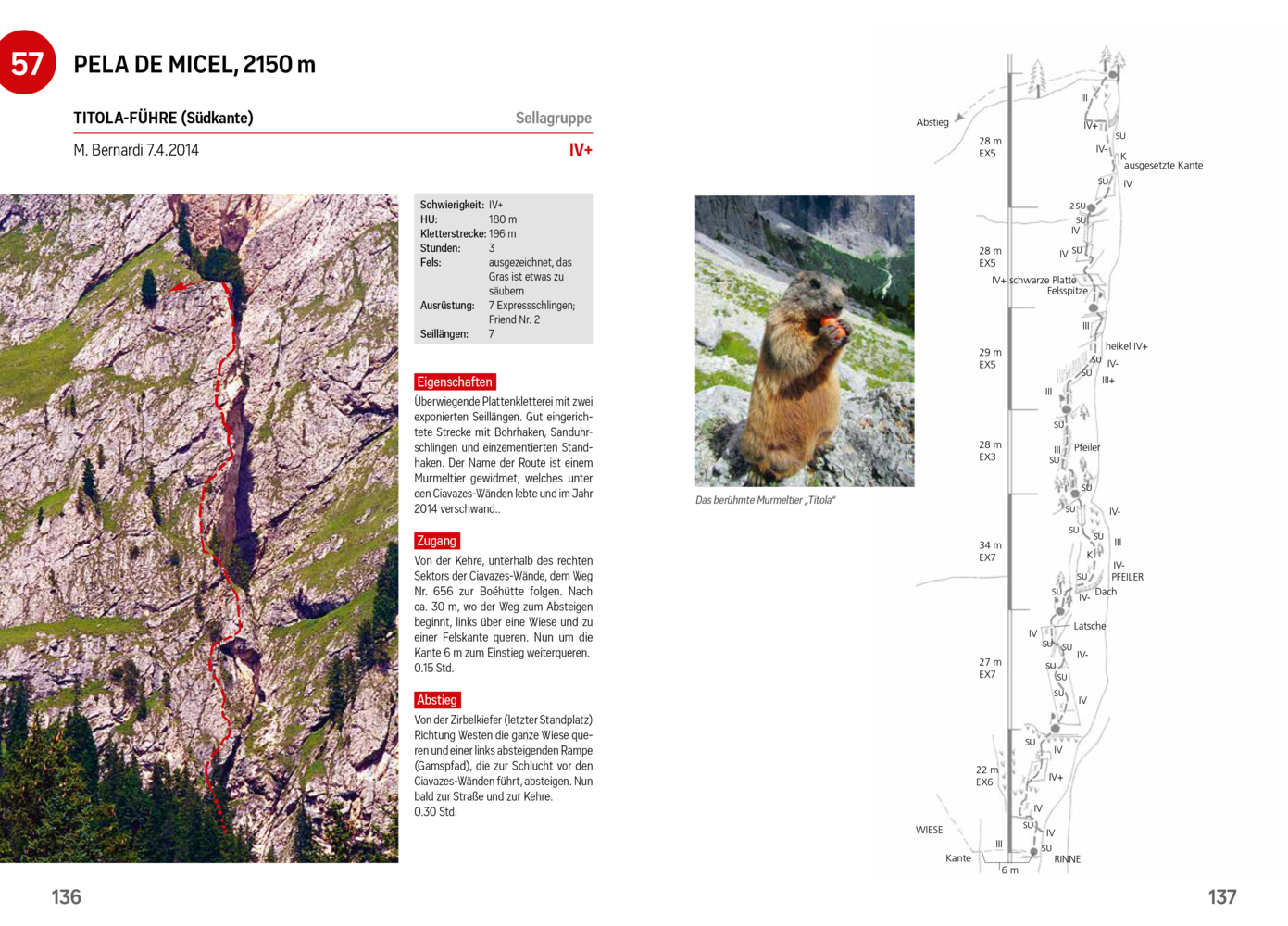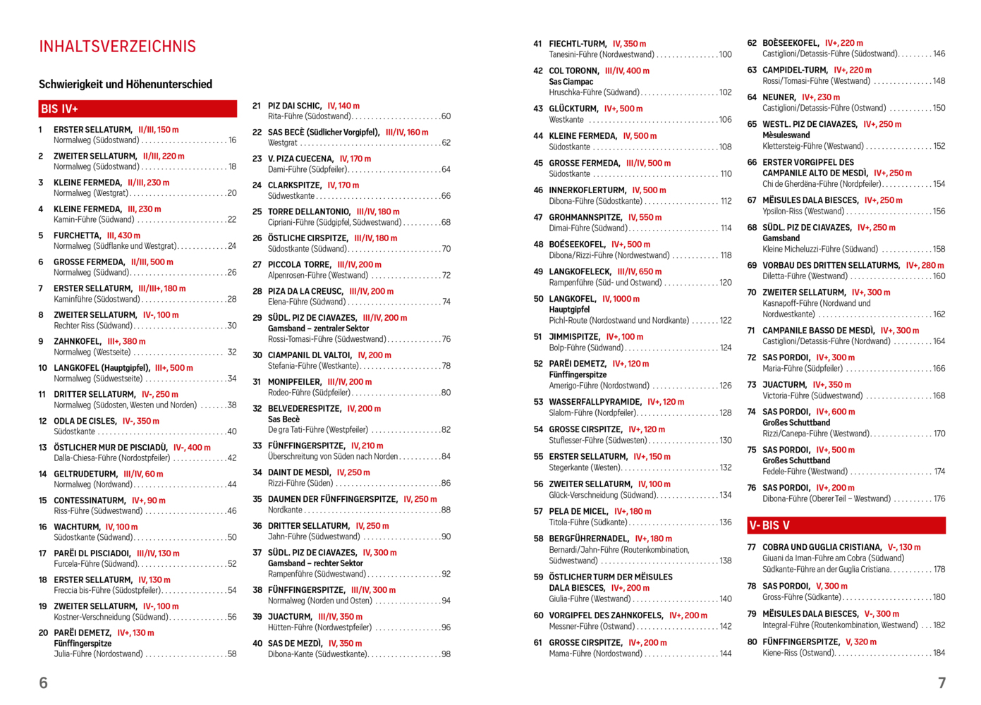 In diesem Kletterführer werden die 150 schönsten Kletterrouten in den Dolomiten, speziell in Gröden und Umgebung vorgestellt. Die einzelnen Routen sind nach Schwierigkeitsgraden unterteilt und beinhalten übersichtliche technische Daten wie Höhenunterschied, Strecke, Seillängen, Gehzeiten u.a. sowie detaillierte Beschreibungen und Skizzen. Der Verlauf der Tour ist einerseits auf Fotos und andererseits in detaillierten Skizzen eingezeichnet - Seillänge für Seillänge - inklusive Schwierigkeitsangaben und Angabe der Felsformationen entlang der Kletterroute.