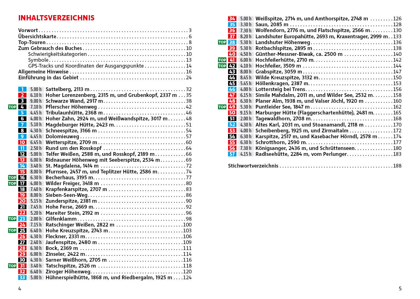 »Den Süden« erahnt man in der Region direkt südlich des Brenners allenfalls verhalten; die Bergwelt zeigt sich zentralalpin und dementsprechend klimatisch rau. Doch die Spannbreite zwischen den eisbewehrten Dreitausendern am Alpenhauptkamm und dem milden Brixner Becken, wo bereits Weinreben gedeihen, erscheint natürlich enorm. Die geografische Vielfalt führt zu einer großen Fülle unterschiedlichst geprägter Touren – hochalpine Gipfelbesteigungen bis in Höhen von 3500 Metern, genussvolle Alm- und Hüttenwanderungen und einfache Talwanderungen stehen zur Auswahl. Neben dem Wipptal umfasst das Tourengebiet auch die schönen Seitentäler von Pflersch, Ridnaun, Ratschings und Pfitsch.