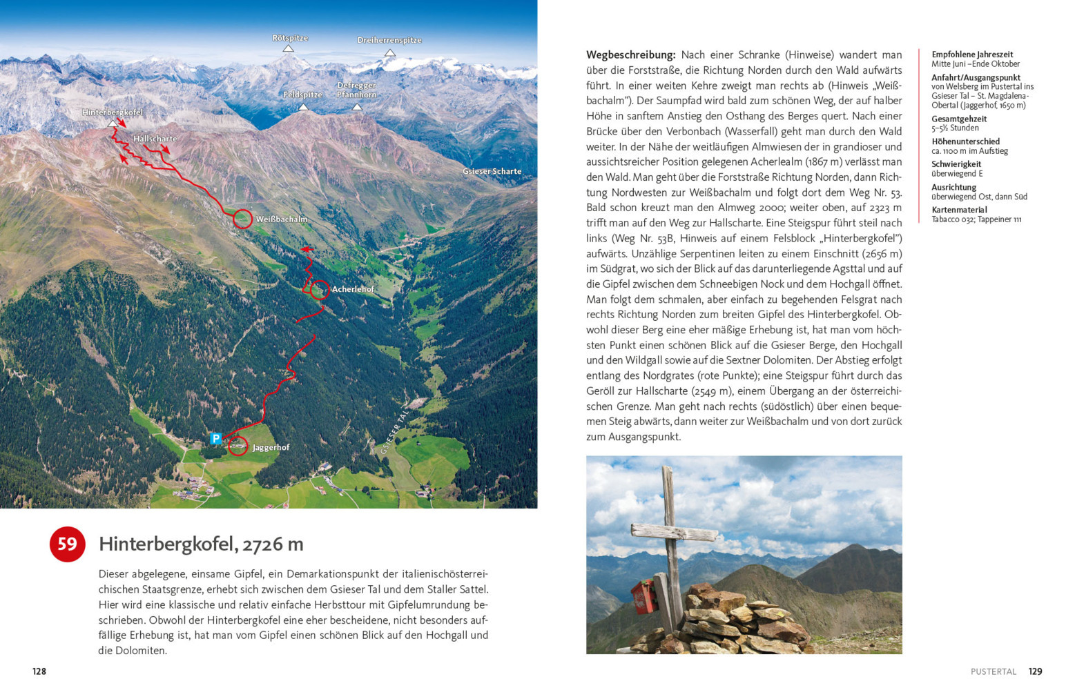 Inclusief gegevens over afstand, stijging, moeilijkheidsgraad, oriëntatie en benodigde kaarten – alles wat een bergwandelaar nodig heeft. -