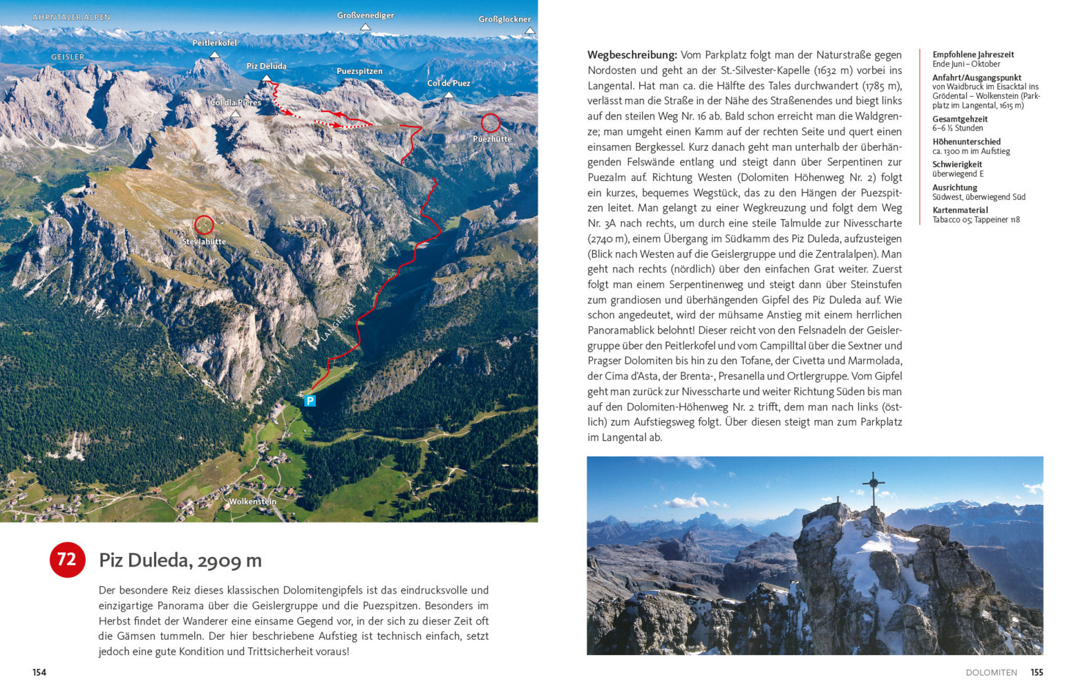 Het bijzondere aan deze gids zijn de indrukwekkende luchtfoto’s, waarop het volledige verloop van de route is aangegeven – van startpunt tot top. Dit visuele hulpmiddel biedt een helder overzicht van het terrein en vergroot de oriëntatie onderweg.