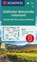 Wandelkaart 074 Südtiroler Weinstraße - Unterland | KompassGoede wandelkaart met vrijwel alle topografische details als hoogtelijnen, vegetatie, schaduwtekening maar ook de ingetekende wandelroutes en in veel gevallen ook fietsroutes (MTB). Gevaarlijke routes worden als zodanig weergegeven met …