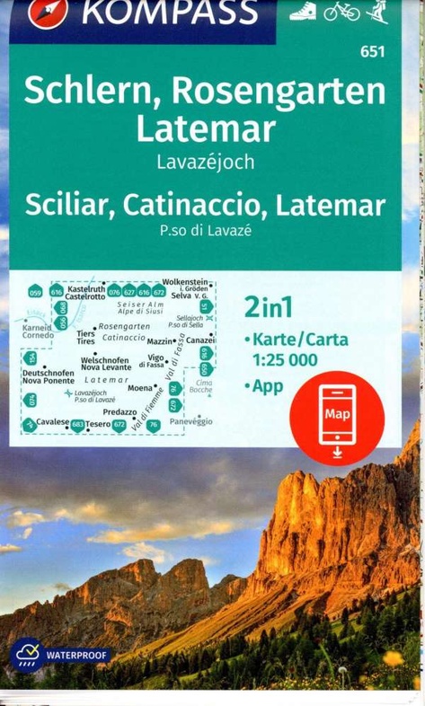 - Wandelkaart 651 Schlern, Rosengarten, Latemar | Kompass