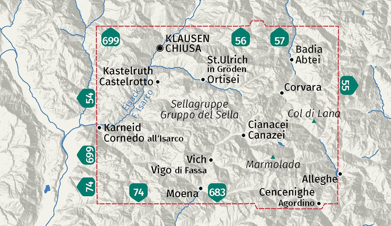 - Wandelkaart 59 Sellagruppe - Gruppo di Sella | Kompass