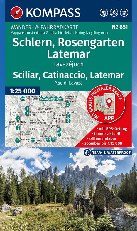 - Wandelkaart 651 Schlern, Rosengarten, Latemar | Kompass