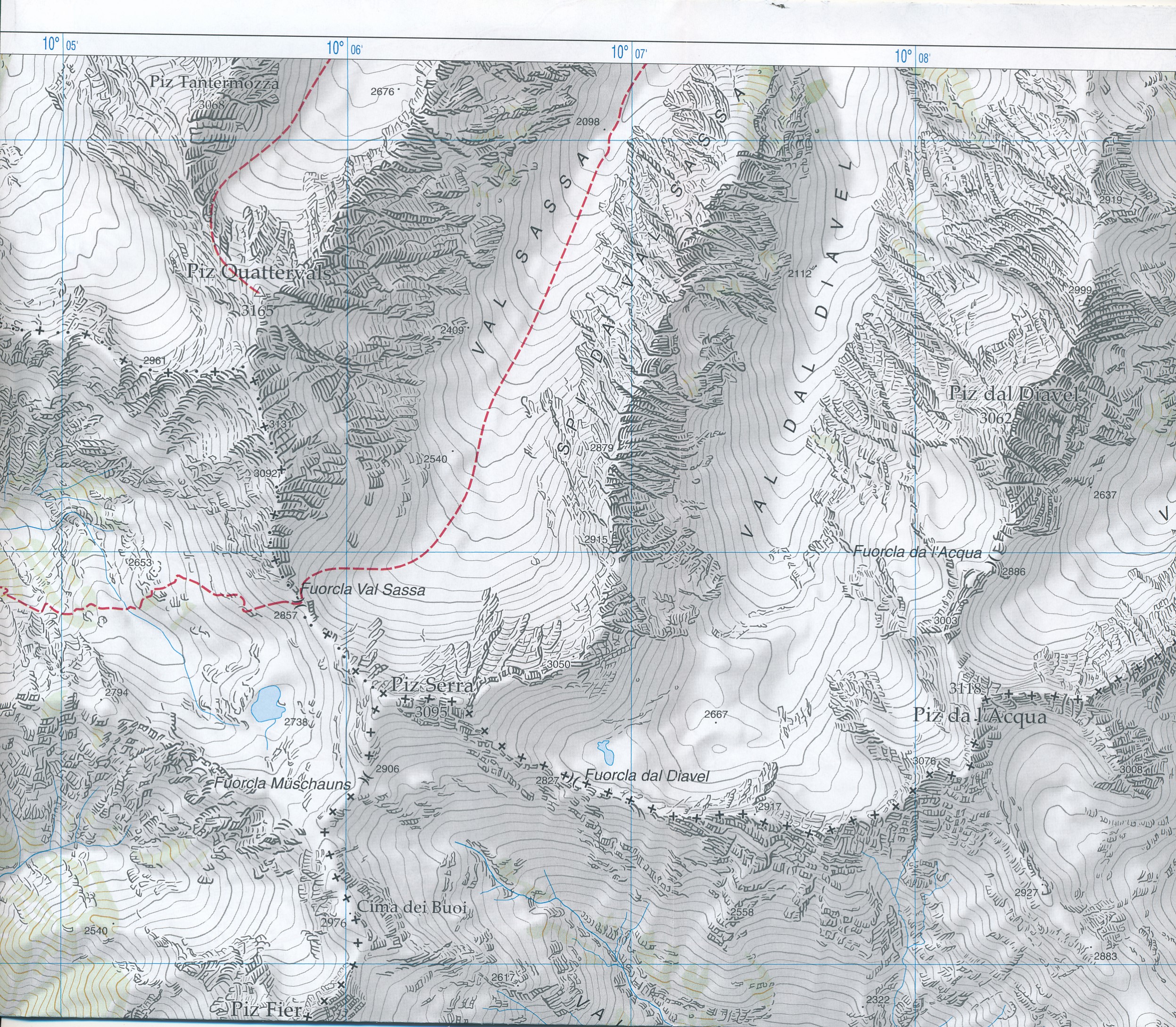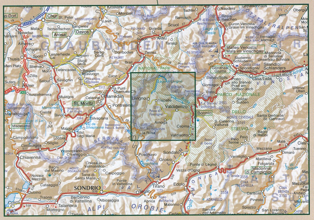 Livigno, Valdidentro, Trepalle, la Rösa, Arnoga, Valdisotto, Cepina, Punta Murtaröl / Cima la Casina, Piz da l'Acqua, Cima Viola, Cima de Piazzi, Piz Paradisisn, Piz Quattervals.