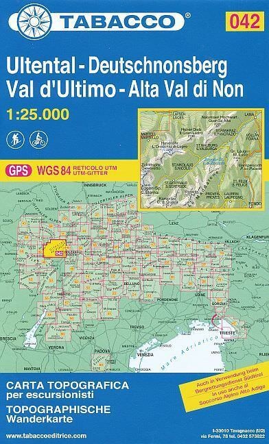 - Wandelkaart 042 Ultental - Deutschnonsberg- Val d'Ultimo - Alta Val di Non | Tabacco Editrice