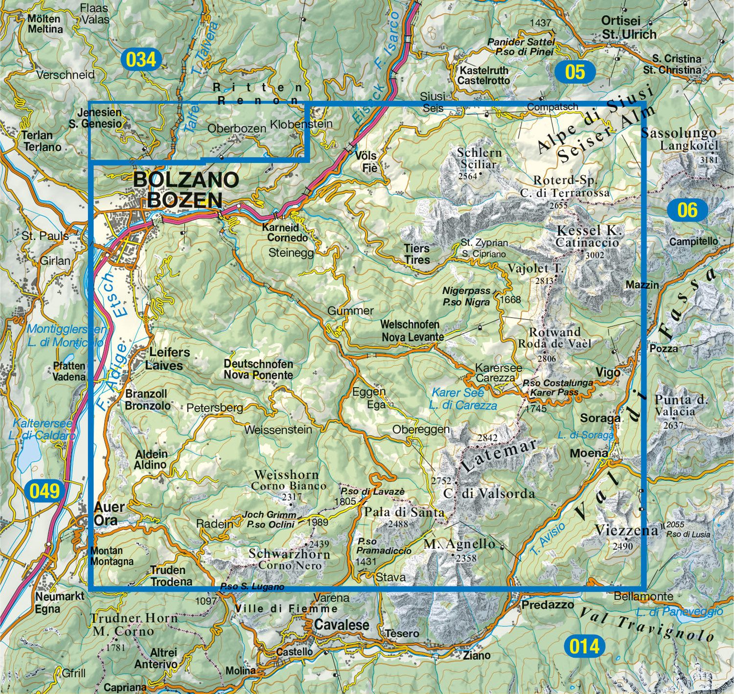 - Wandelkaart 014 Val di Fiemme / Lagorai / Latemar | Tabacco Editrice