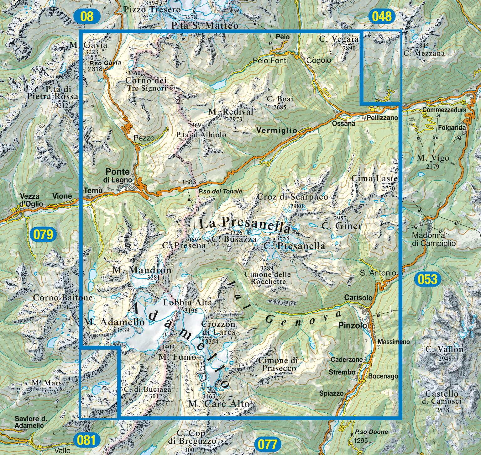 - Wandelkaart 079 Alta val Camonica - Edolo - Adamello | Tabacco Editrice