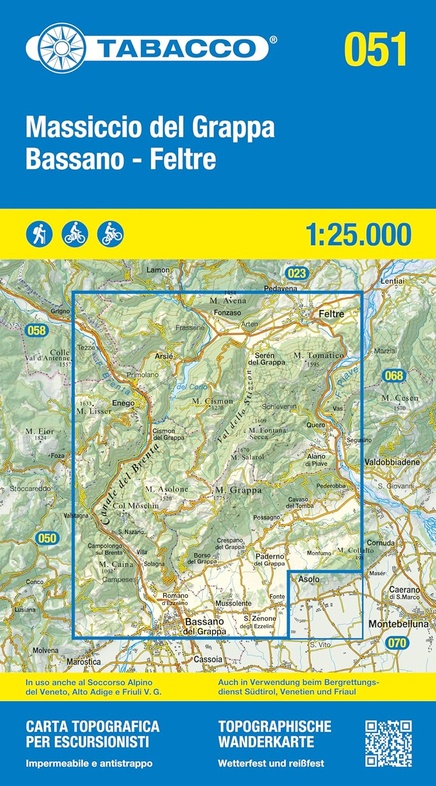- Wandelkaart 051 Massiccio del Grappa - Bassano - Feltre | Tabacco Editrice