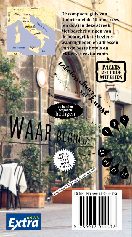 ANWB Extra reisgids Umbrië – Italië Beleef Umbrië met de compleet vernieuwde reisgids ANWB Extra Umbrië! Umbrië is het ruige broertje van Toscane. In het groene hart van Italië, land van boeren en jagers. Maar ook van heiligen en in bruine pijen gehulde monniken. Hier kom je nog tal van oude Italiaanse gebruiken tegen zoals pasta-makende oma’s of edelsmeedkunst. De ANWB Extra reisgids Umbrië biedt naast veel praktische tips over campings, vakantiehuizen, hotels en vervoer ook 15 inspirerende bezienswaardigheden die je niet mag missen. Beklim de berg Corsa dei Ceri, bezoek de middeleeuwse stad Spello of zoek verkoeling bij de watervallen van Cascata delle Marmore. Deze kleine reisgids past gemakkelijk in de tas en heeft een handige uitneembare kaart met daarop de beste tips voor overnachten, winkelen, eten en drinken en uitgaan. ANWB Extra is de succesvolste reisgidsenserie van Nederland! Met meer dan 100 gidsen biedt deze serie een reisgids voor nagenoeg iedere denkbare bestemming.Reviews