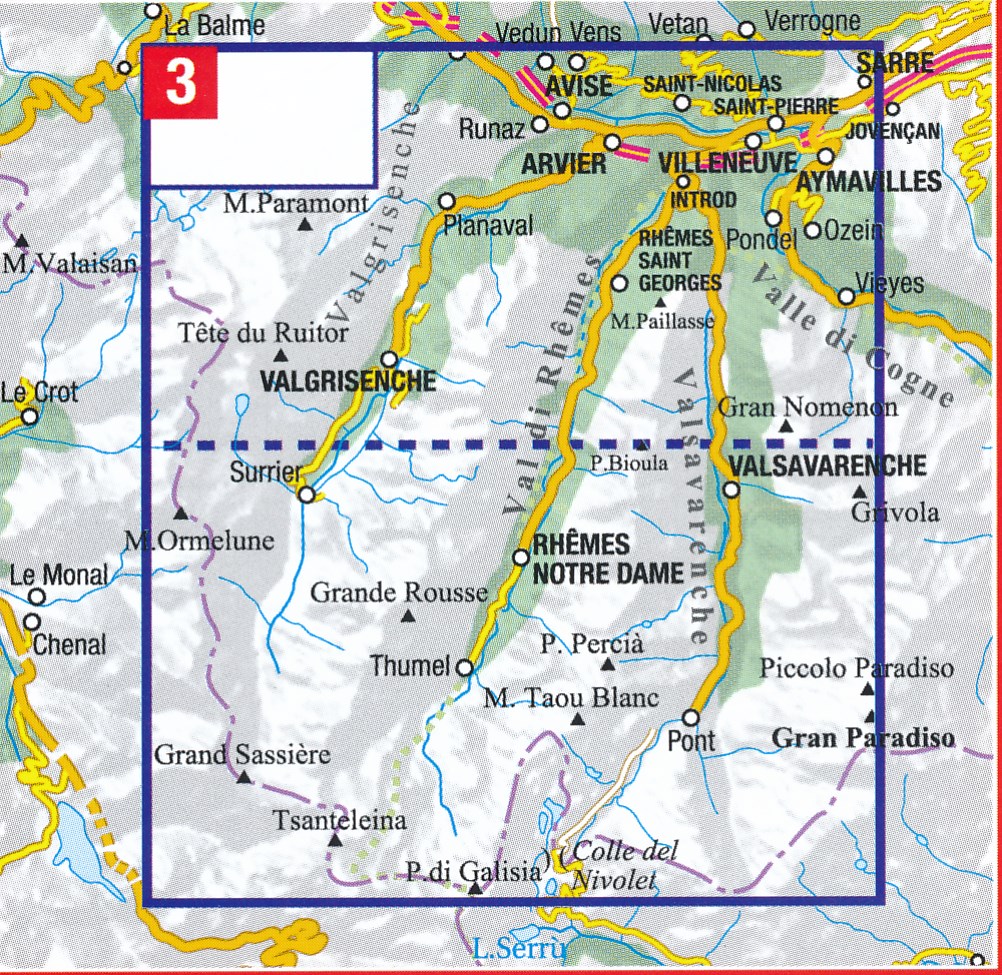 Voor weinig gebieden in Italië zijn echt goede wandelkaarten beschikbaar. Dit is gelukkig zo'n serie: voor de noordwestelijke Alpen van Italië, Gran Paradiso, Mont Blanc en Aosta en omgeving.