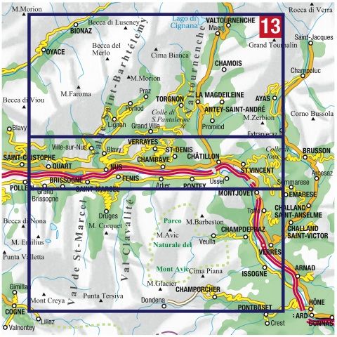 Voor weinig gebieden in Italië zijn echt goede wandelkaarten beschikbaar. Dit is gelukkig zo'n serie: voor de noordwestelijke Alpen van Italië, Gran Paradiso, Mont Blanc en Aosta en omgeving.