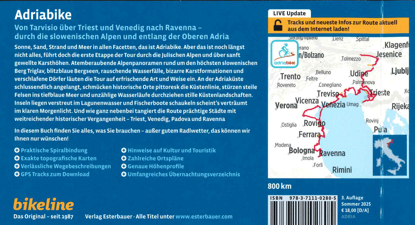 Fietsgids Bikeline Adriabike von Tarvisio nach Ravenna | Esterbauer (9783711102805)