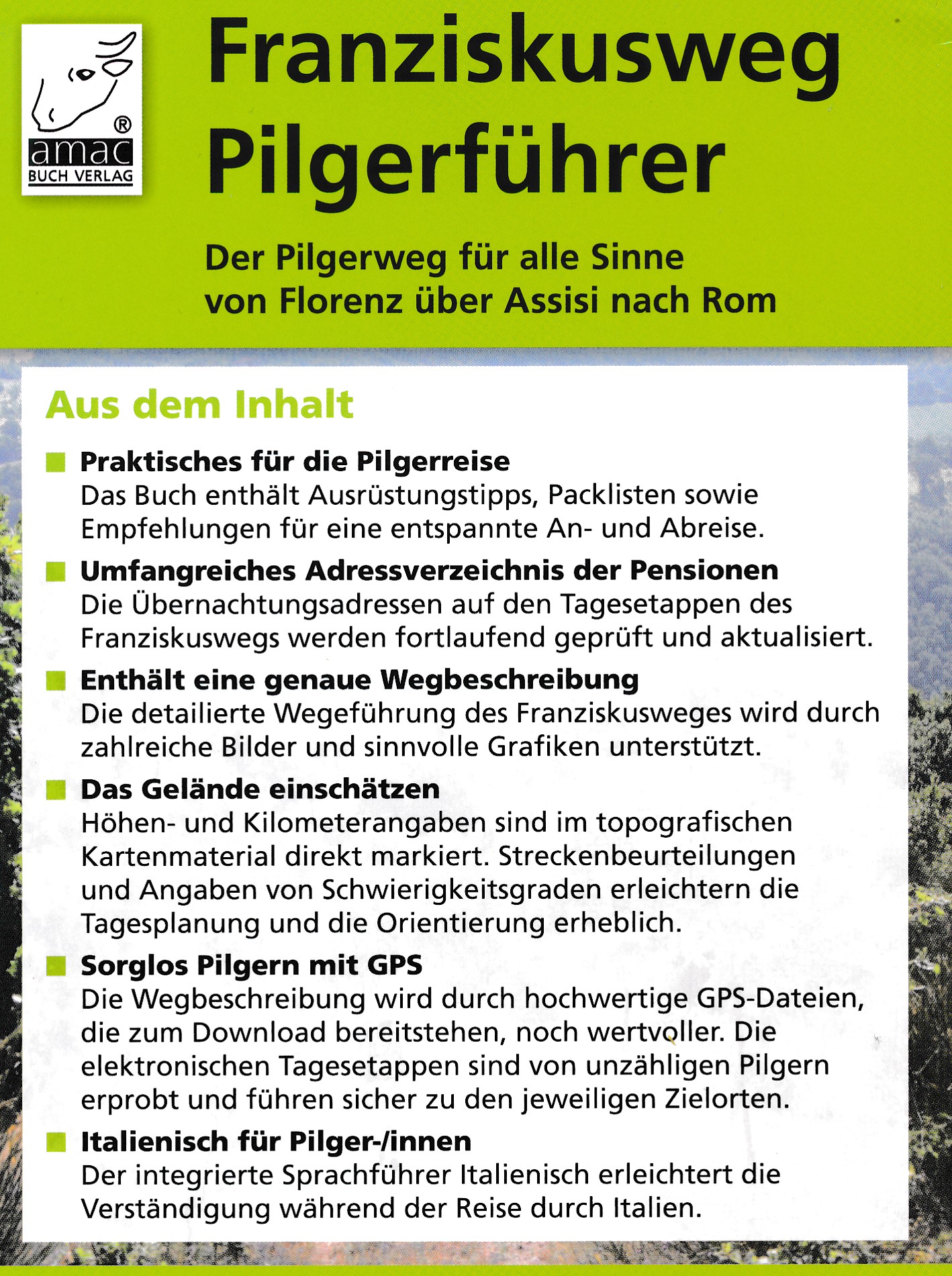 "Buongiorno, buona gente!" - "Guten Tag, ihr guten Menschen!" Mit diesem Gruß auf den Lippen durchschritt Franz von Assisi im Jahre 1209 zum ersten Male das Rietital. Auch in der heutigen Zeit trifft man auf dem Franziskusweg überall freundliche und hilfsbereite Menschen. Was erwartet Sie als Pilger/-in auf dem Franziskusweg? Über 500 Kilometer in vier Wochen zu gehen stellt eine echte Herausforderung für den Körper und den Kopf dar. Viele Höhenmeter werden Sie in den nächsten Wochen überwinden müssen, dafür unberührte Natur durchwandern und immer wieder werden Sie an Klöstern vorbeikommen, die viel von der Geschichte des Franz von Assisi erzählen. Spirituelle Orte, die Natur und die Einheimischen Italiens, köstliches Speisen, einsame Dörfer wie Greccio oder lebendige Städte wie Rieti gehören ebenso dazu wie der grandiose Abschluss der Reise, Ihre Ankunft in Rom.
