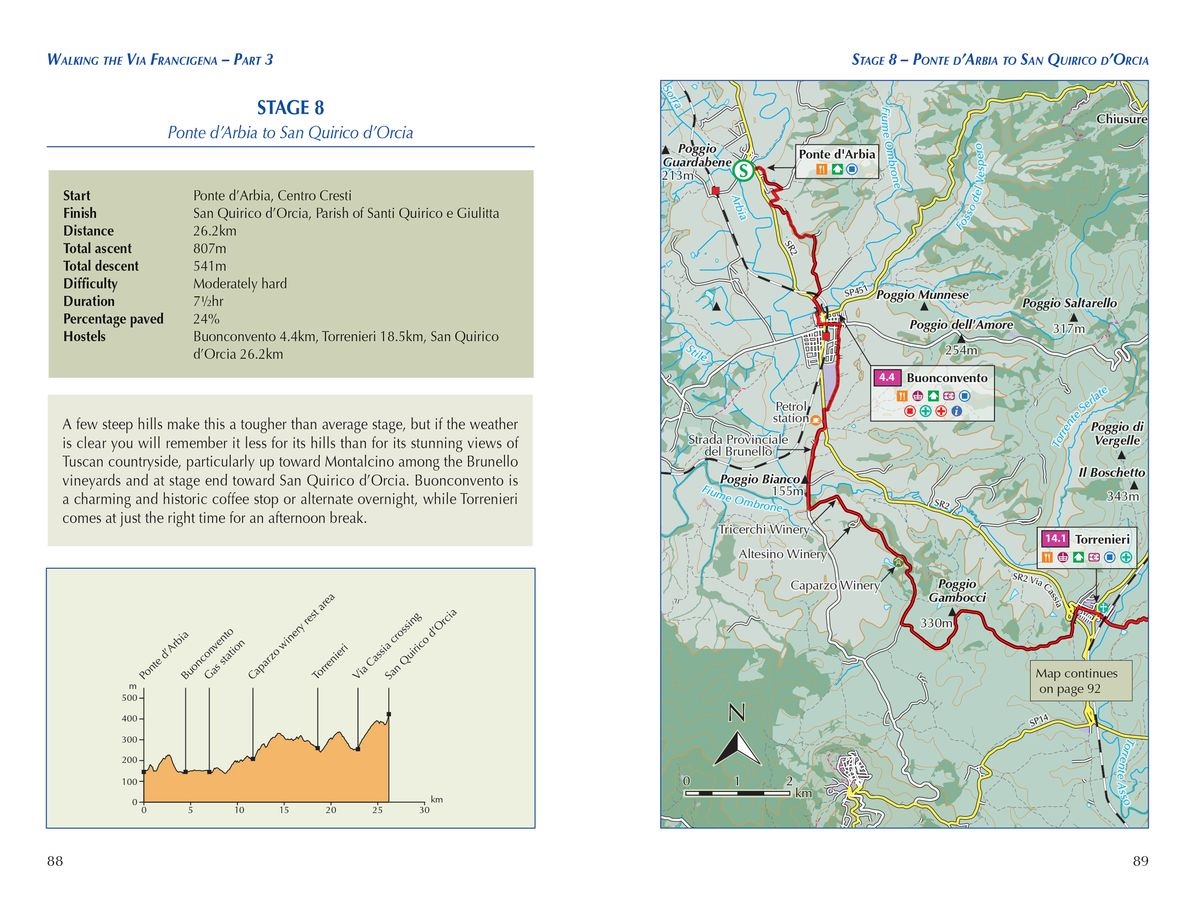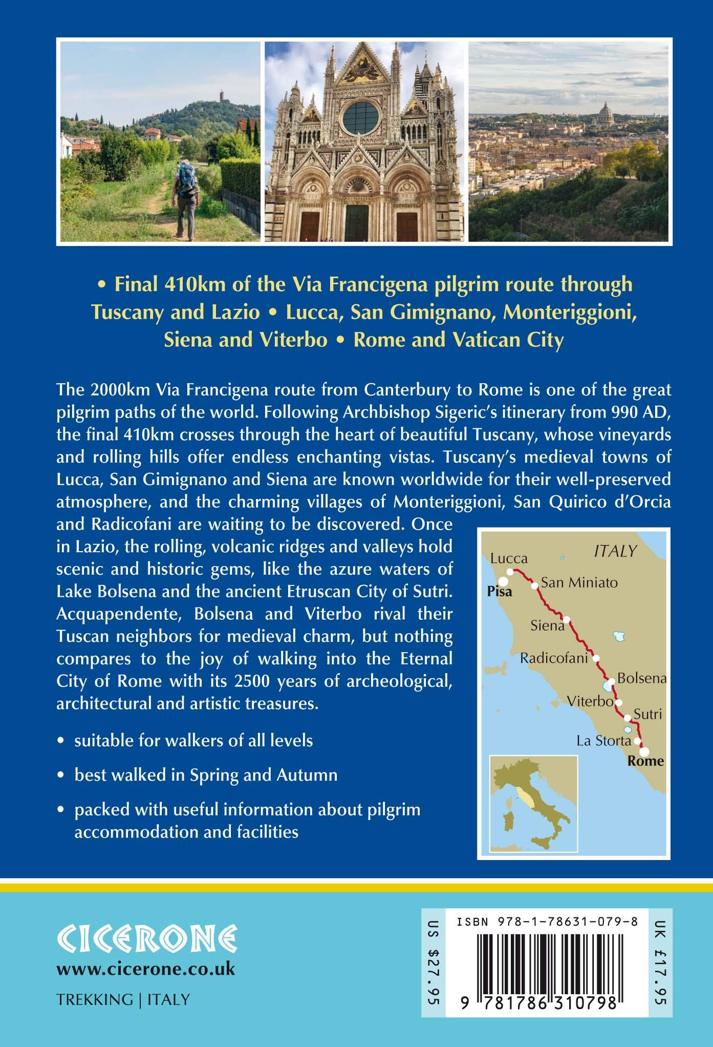 Guidebook to the final 400km of the Via Francigena pilgrim route from Lucca to Rome. Crossing Tuscany in the heartland of Italy, the route goes through two of the region's most important cities, Lucca and Siena, and visits San Gimignano, Monteriggioni, and Radicofani. Described in 18 stages, with information on facilities and pilgrim hostels. Certified by the Council of Europe as an official Cultural Route, the Via Francigena from Canterbury to Rome brings to the modern pilgrim the cultural heritage of four nations--England, France, Switzerland, and Italy--and highlights their natural beauty and their history. Each stage has route directions and 1:100,000 mapping, which shows the route line and the facilities available at different locations. The book details accommodation along the route, including invaluable information on low-cost pilgrim hostels. There are city maps for Lucca, Siena, Rome, and Viterbi, and a stage planning guide that lists intermediate distances between pilgrim accommodation, allowing the reader to customise their walking schedule. The introduction contains a wealth of advice on planning and preparation and tips for making the most of the hike.