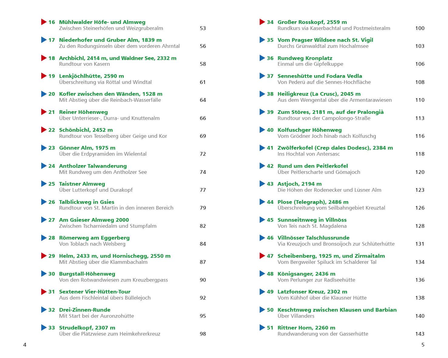 Der Schwerpunkt dieses Wanderbuchs liegt auf leichten Halbtages- und Tagestouren, mit mal sportlichen Abstechern. Neben aussichtsreichen Höhenwegen, klaren Bergseen, urigen Hütten und Almen sowie zahlreichen leichten Gipfeln gibt es Sehenswürdigkeiten wie Burgen oder Kapellen zu entdecken: 75 Traumtouren im Eisacktal und im Pustertal mit ihren Seitentälern, zwischen den Sarntaler Alpen, den Zillertaler Alpen sowie den beliebten Dolomiten.