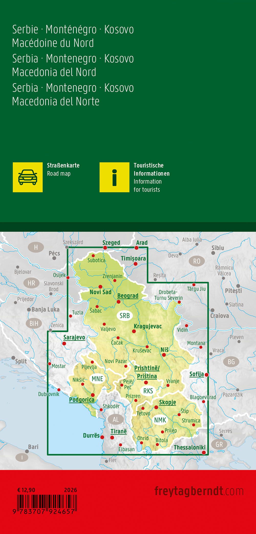 Wegenkaart - landkaart Servië - Montenegro - Macedonië | Freytag & Berndt (9783707924657)