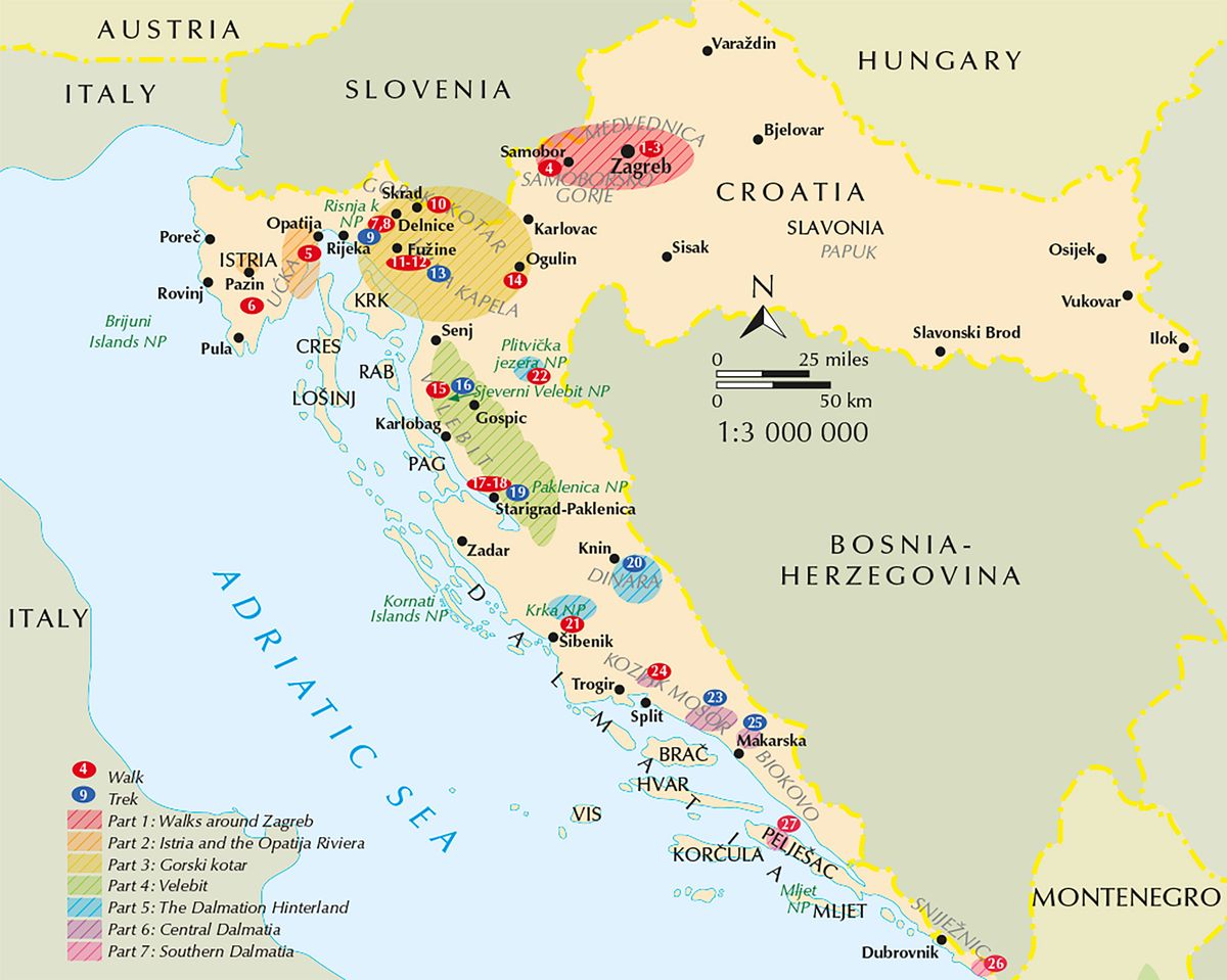 mountain trails and national parks, including Velebit, Dinara and Plitvice