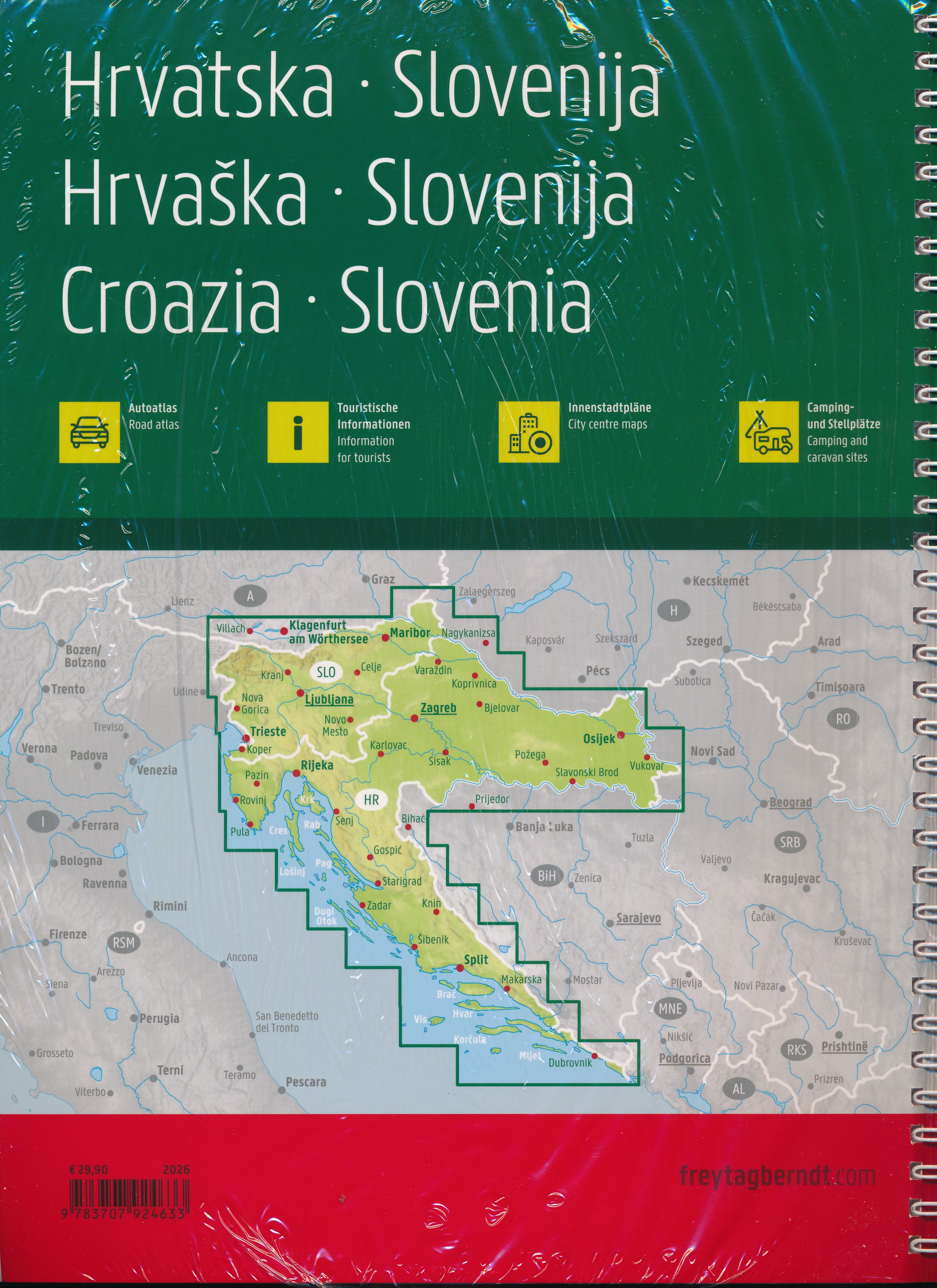 Wegenatlas Kroatië - Slovenië | Ringband | A4-Formaat | Freytag & Berndt (9783707924633)