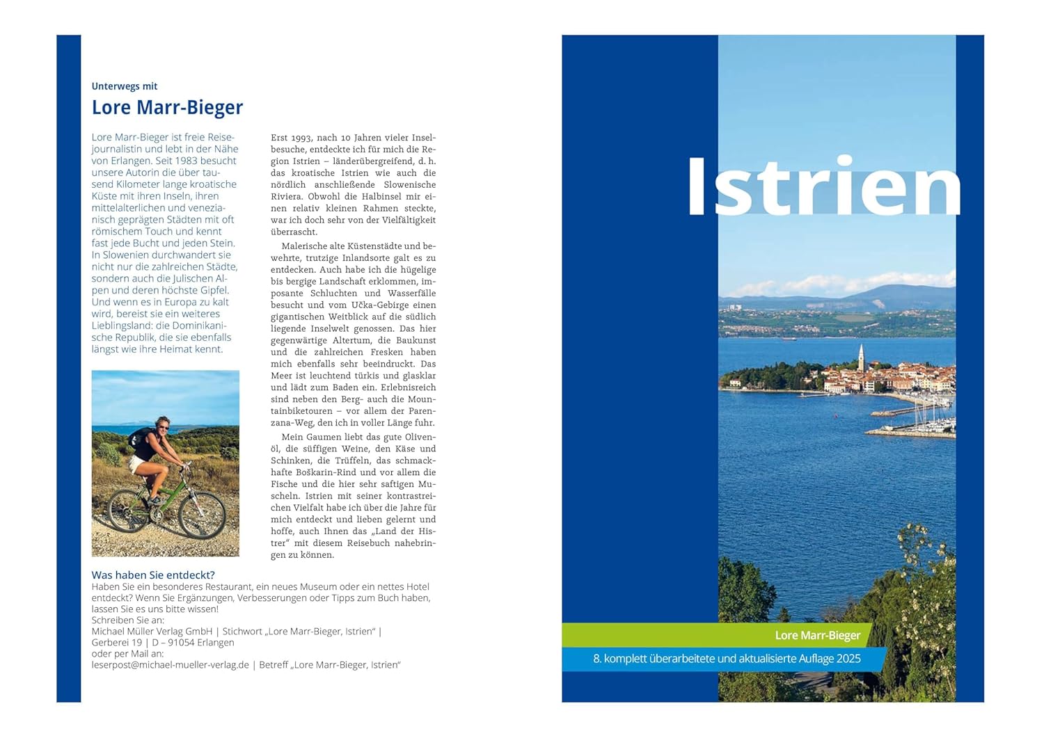 »Das Reisehandbuch aus dem Michael Müller Verlag macht Lust auf die Halbinsel Istrien«, sagt Angelika Reinemann-Klees vom Top Magazin Koblenz. Alle Informationen und Insider-Tipps im Istrien-Reiseführer in der 8. Auflage wurden von Autorin Lore Marr-Bieger vor Ort recherchiert und ausprobiert. 408 Seiten und 250 Farbfotos sowie ein Faltplan und 53 weitere Karten sorgen dafür, dass Sie die Halbinsel, die sich über drei Länder erstreckt, so gut wie die Einheimischen kennen lernen. 15 Wander- und 16 Radtouren lassen Sie die Region auf besondere Weise zu entdecken – übrigens: 14 der Touren gibt’s zum kostenlosen Download.