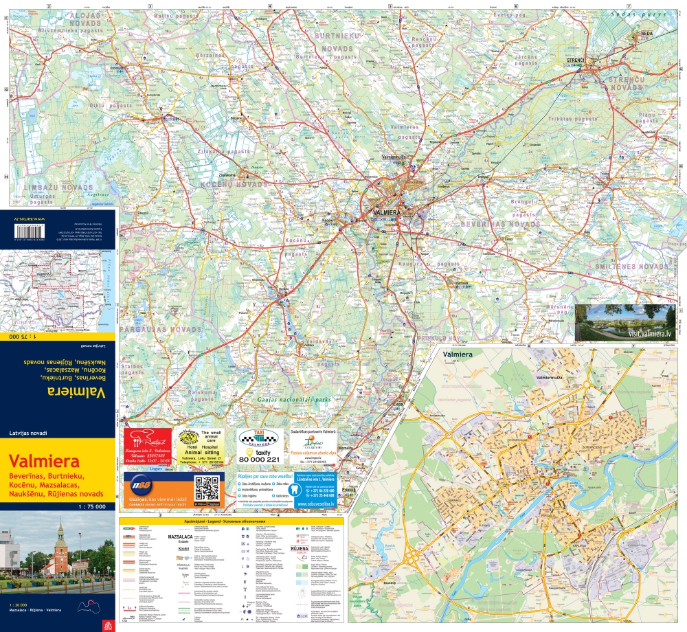 Wegenkaart Valmiera & omgevingBeverinas, Burtnieku, Kocenu, Mazsalacas, Nauksenu, Rujienas novads