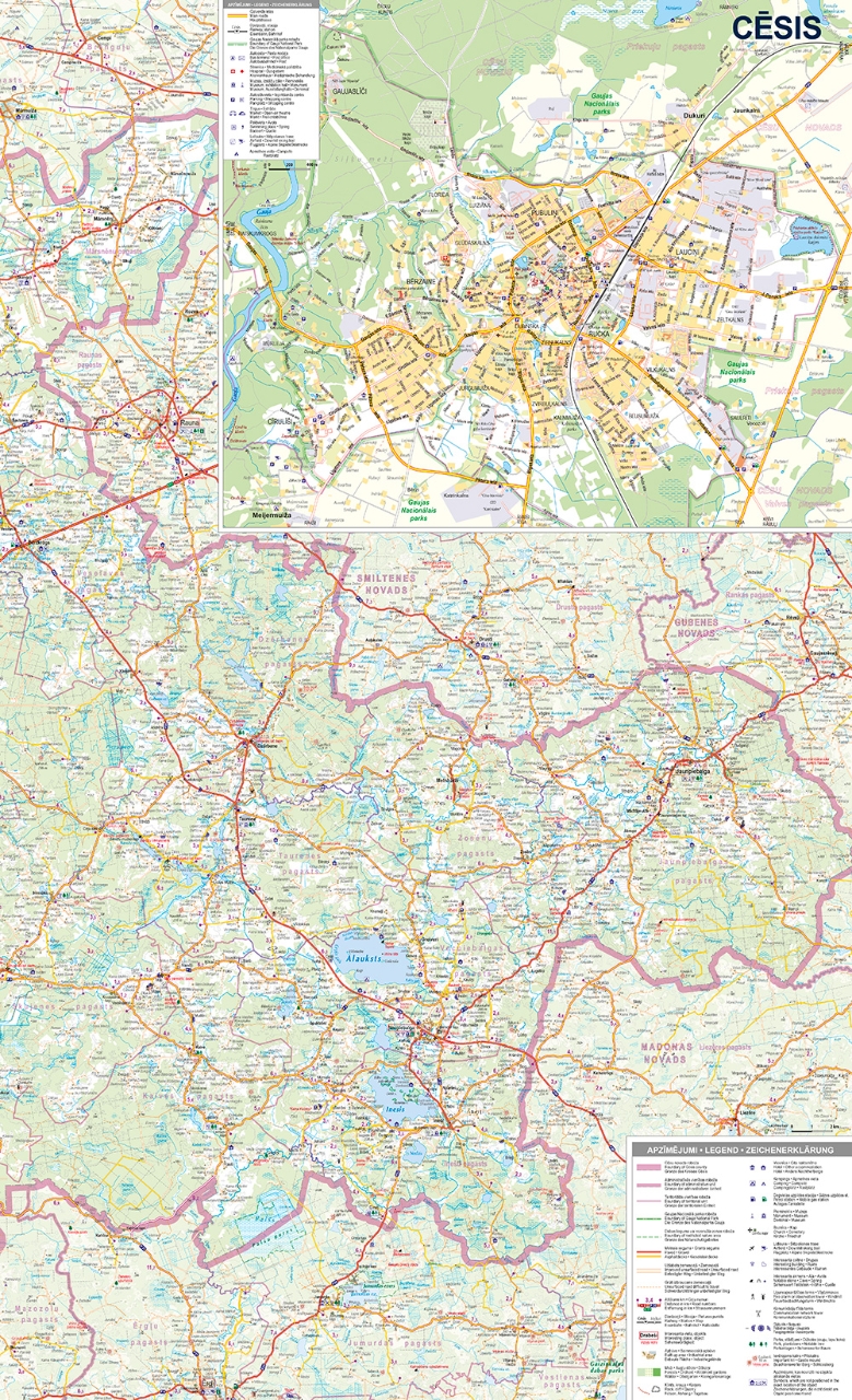 Wegenkaart CesisThe first completely updated edition of the Cesis region was prepared using the latest cartographic issues and data from field survey.